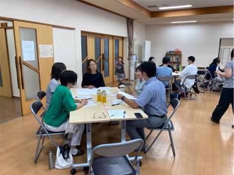 説明の後、参加者をグループに分けて意見交換を行う予定が示され、4グループに分かれ自由に意見を出し合う形式で進行することとした。