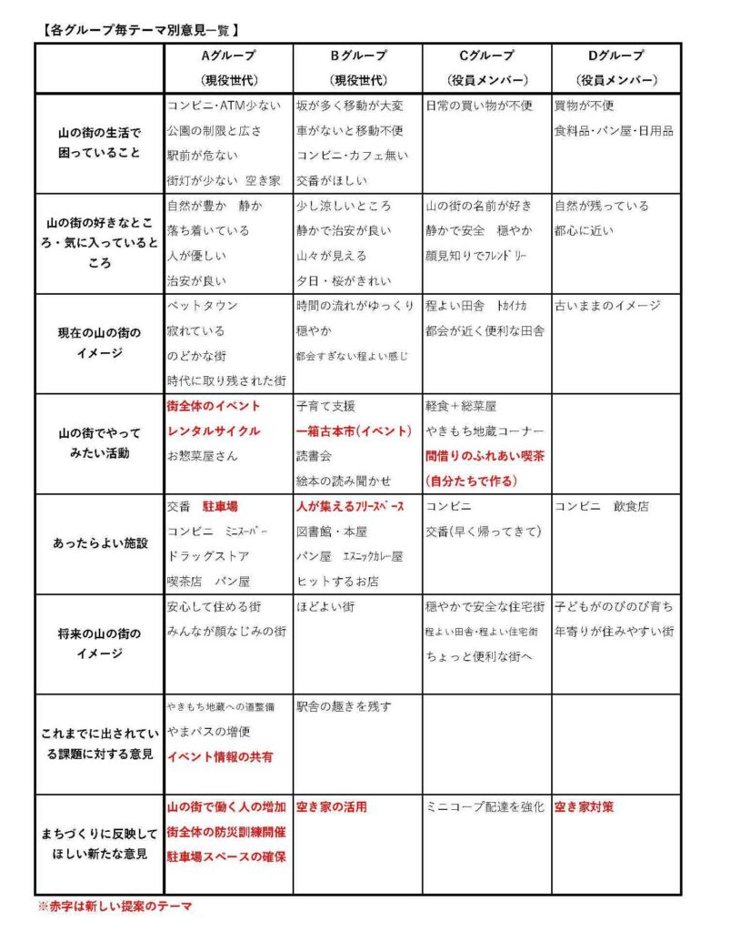 【まちづくり構想の組み立て・山の街の現状と課題、R7 総会で出されたまちづくりの意見(配布資料)】を参照ください。